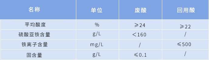 進料液:鈦白粉副產(chǎn)廢硫酸,500噸/天,硫酸濃度≥24%,硫酸亞鐵含量<160g/L;